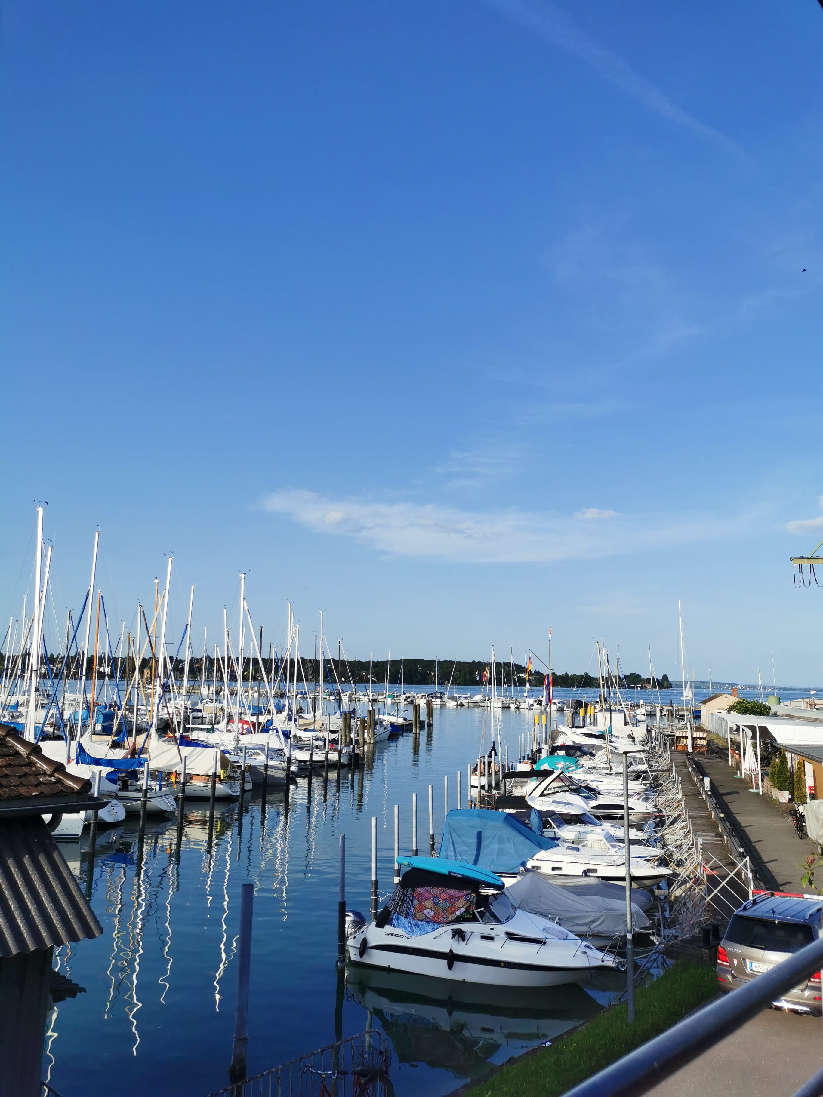 Gegen 18:00 Uhr werden wir zum Abendessen im DSMC erwartet und dann „ab in die Koje“; denn am Pfingstsonntag hieß es frühzeitig „Leinen Los“ und mit vollen Segeln Richtung Ost. Der Wettergott blieb uns gewogen; denn wir erreichten gerade noch rechtzeitig vor den ersten Schauern unsere Liegeplätze beim Württembergischen Yachtclub. Auf der kleinen, überdachten Dachterrasse des Hafenmeisters gab es dann, nach der Begrüßung „The same procedure as every year“ frische Erdbeeren, Hefe- und Nußzopf, kleine Knabbereien und erfrischende - belebende Getränke!