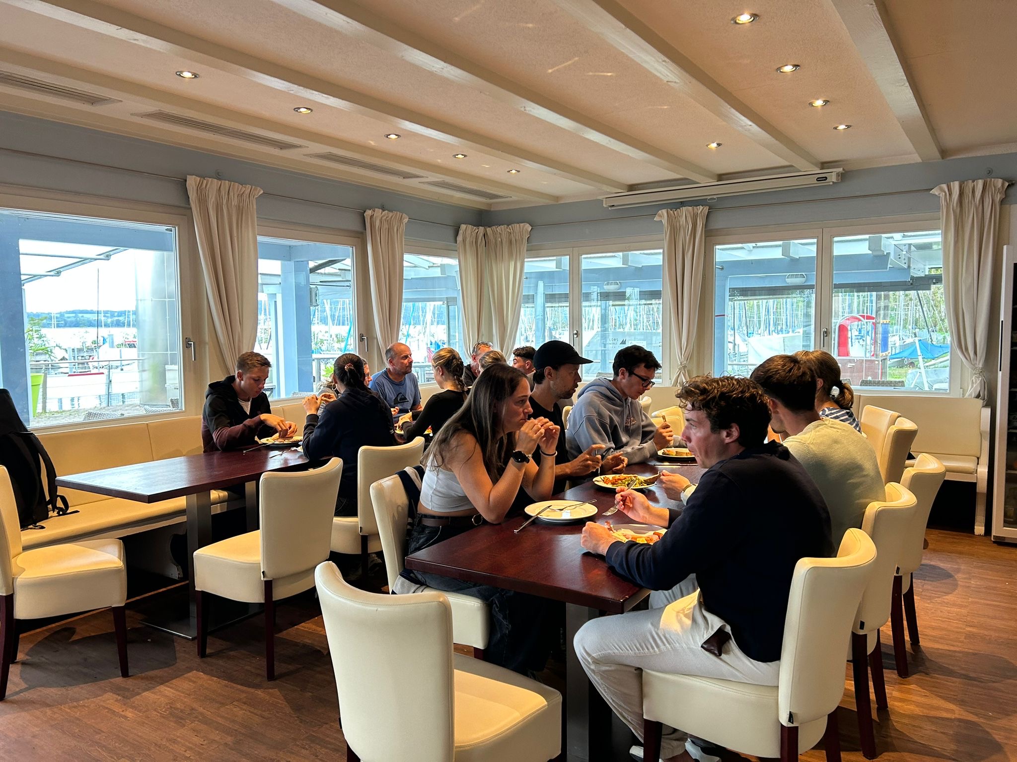 Besonders freut uns, dass auch zwei Mitglieder des SMCÜ mit an Bord waren – ein schönes Zeichen für das Engagement innerhalb unseres Vereins. Der Lehrgang erstreckte sich über die gesamte Woche und fand nicht nur auf dem Wasser, sondern auch in unserem Clubhaus statt, das vom Verband mitgenutzt wurde. So wurde der SMCÜ einmal mehr zum Treffpunkt für Austausch, Lernen und gelebte Segel-Leidenschaft.